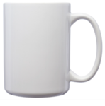 15 oz. ceramic mug. Glossy surface. Handwash only.